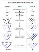 To make functional predictions based on the phylogenetic tree, it is necessary to first overlay any known functions onto thetree. There are many ways this "map" can then be used to makefunctional predictions, but I recommend splitting the task intotwo steps. First, the tree can be used to identify likely geneduplication events in the past. This allows the division of thegenes into groups of orthologs and paralogs (e.g., Eisen et al.1995Is the Phylogenomic Method Worth the Trouble?