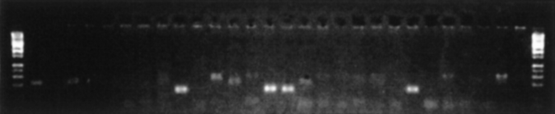 ACAPELLA-1K Superpool PCR screening with four positives shown. Reactions are 2 μl. Samples are human genomic DNA from the UWGC.