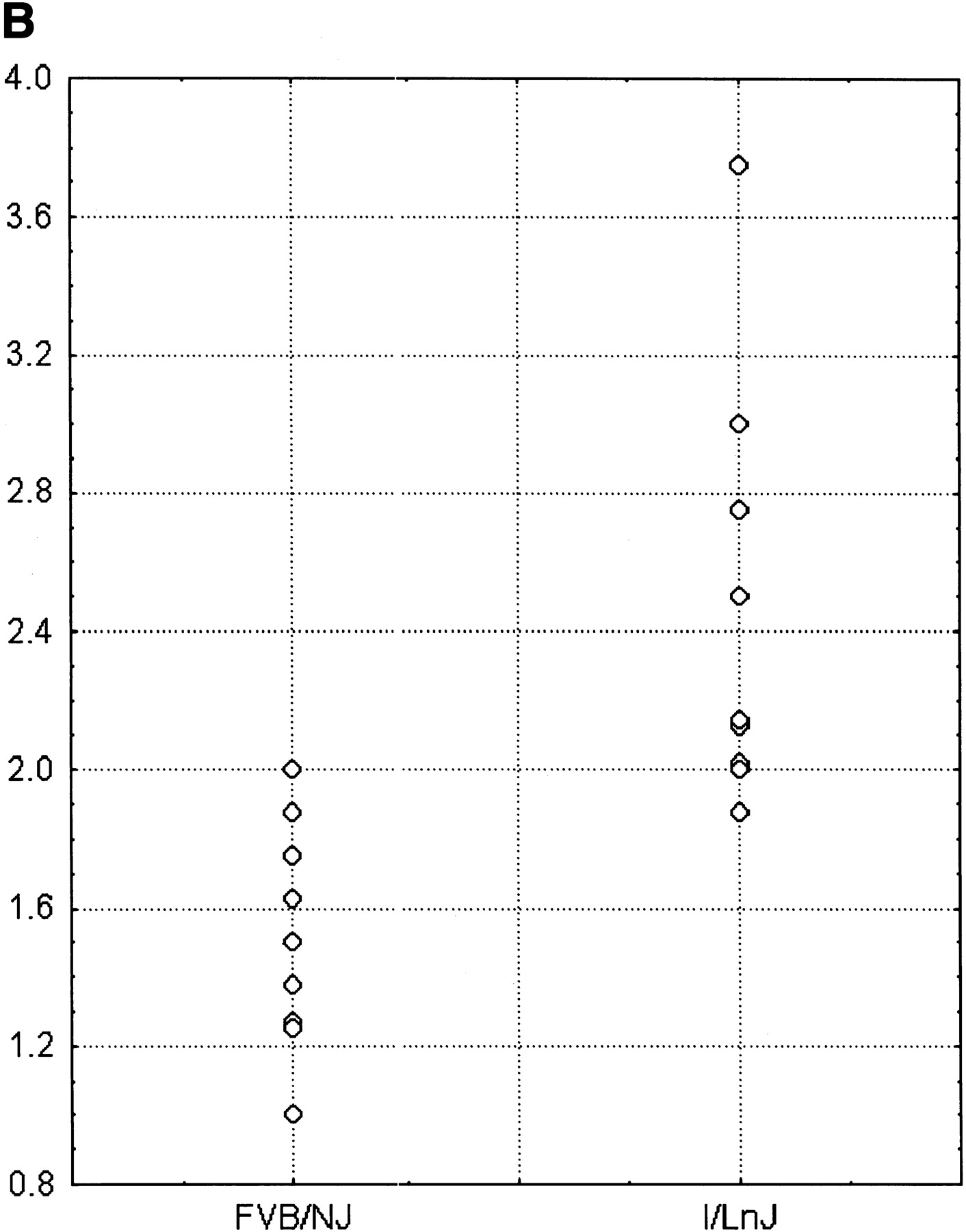 (A) Cdc25A promoter polymorphisms. The site of single base pair polymorphisms between FVB/NJ and I/LnJ are boxed. Bases deleted in the I/LnJ promoter are shaded in gray. The ATG translational start site of Cdc25A is underlined in bold. (B) In vitro Cdc25A promoter expression assay. The I/LnJ and FVB/NJCdc25A promoters were cloned into a luciferase reporter plasmid, transfected into NIH-3T3 cells and the promoter efficiency measured. The data is presented as relative expression compared with the internal cotransfection marker.