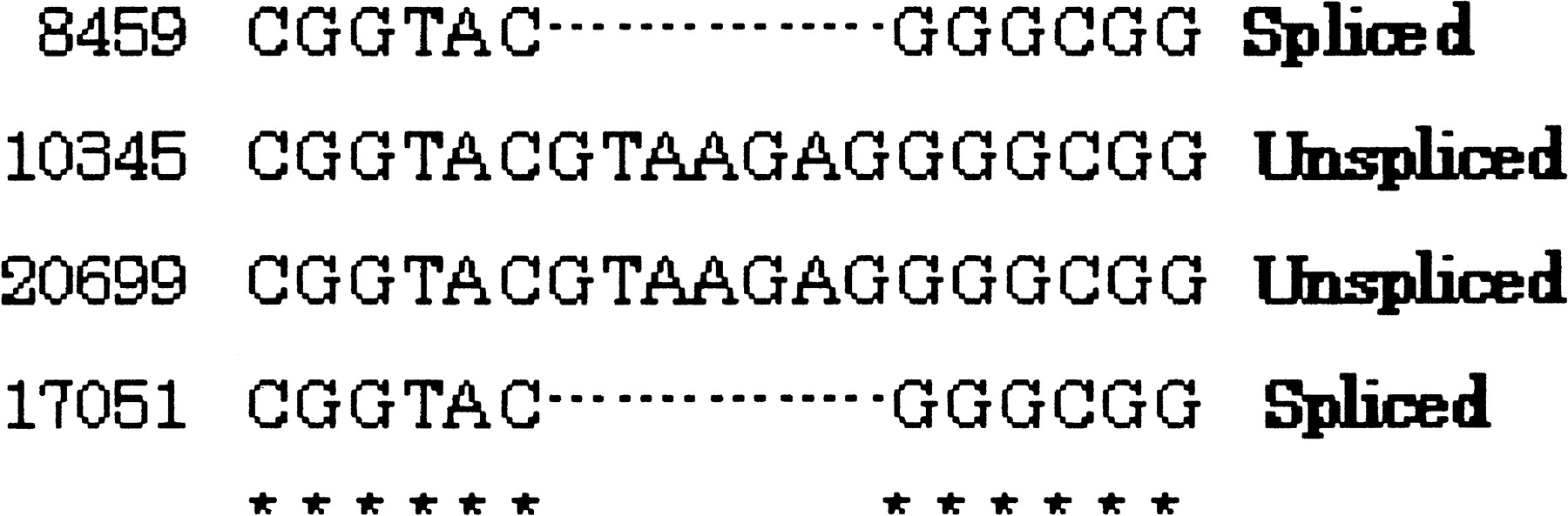 An example of spliced and unspliced regions. Spliced has a gapped region.
