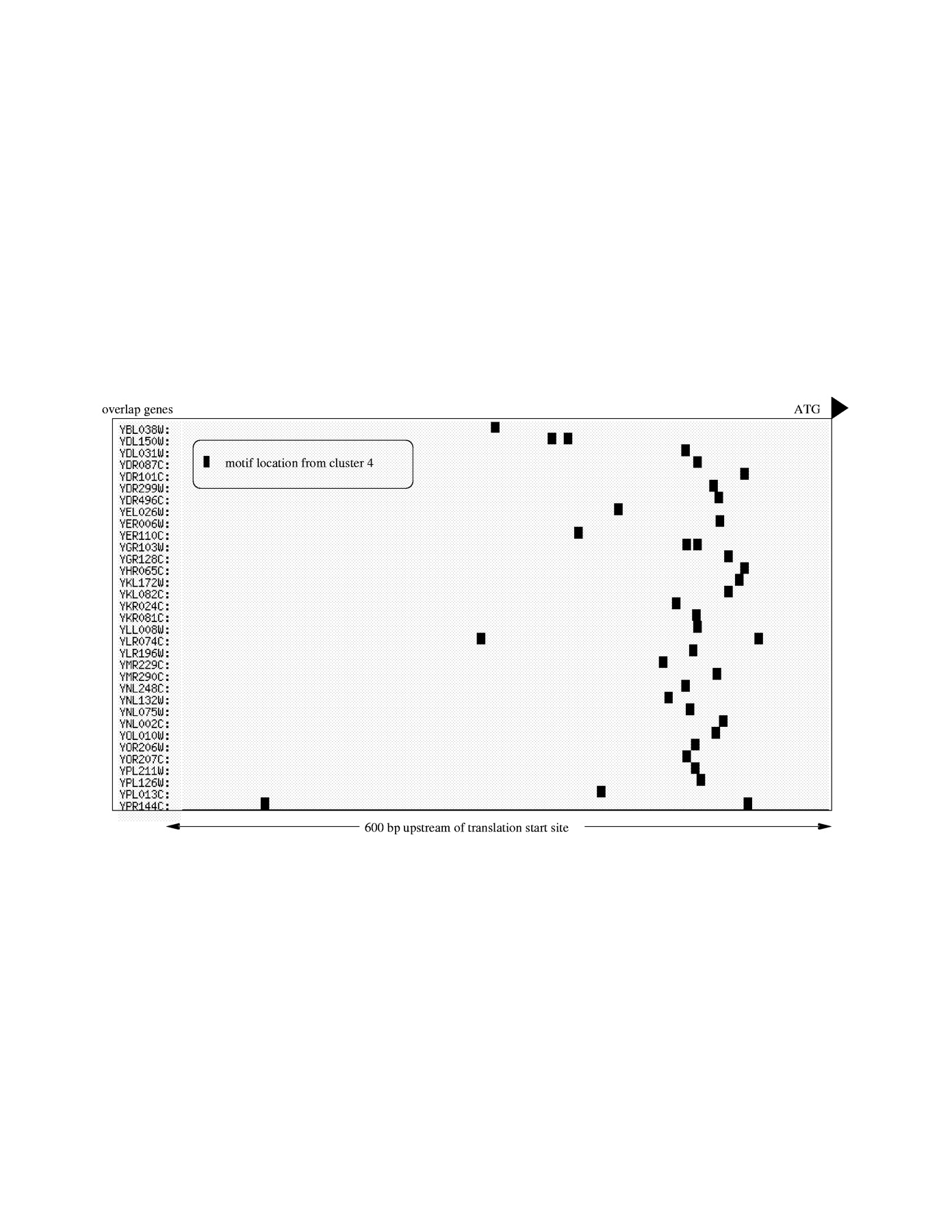 Motif locations relative to start codon of overlap genes from cluster 4.