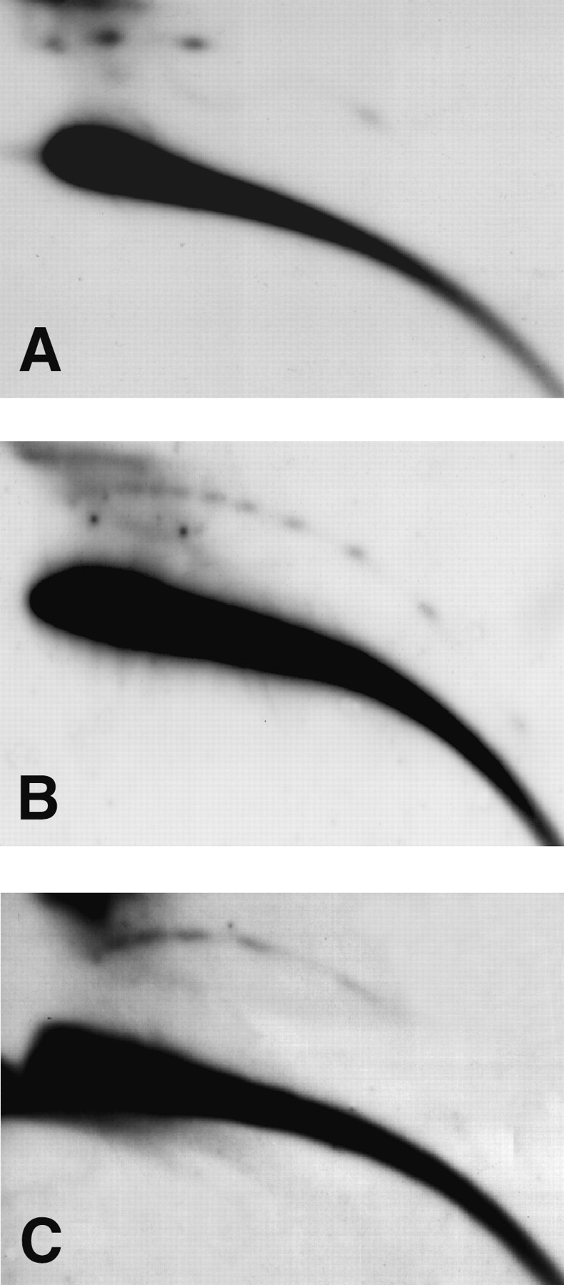 eccDNA from tandemly repeated protein coding genes. Hybridization of blots containing adults DNA with probes of (A) histone H3; (B) Stellate; (C) Suppressor of Stellate. Ladders of spots represent circular multimers of the repeating units in panels A—C, which are 5 kb, 1.25 kb, and 2.5—2.8 kb long, respectively. (A,C) DNA from wild-type Canton-S. (B) DNA from wild-type Oregon-R.