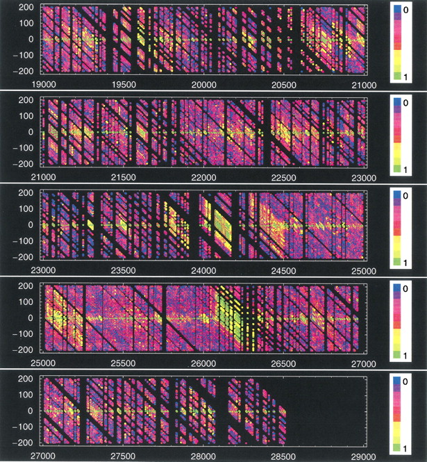 The pattern of LD along chromosome 21.The figure is the continuation of Figure 6.
