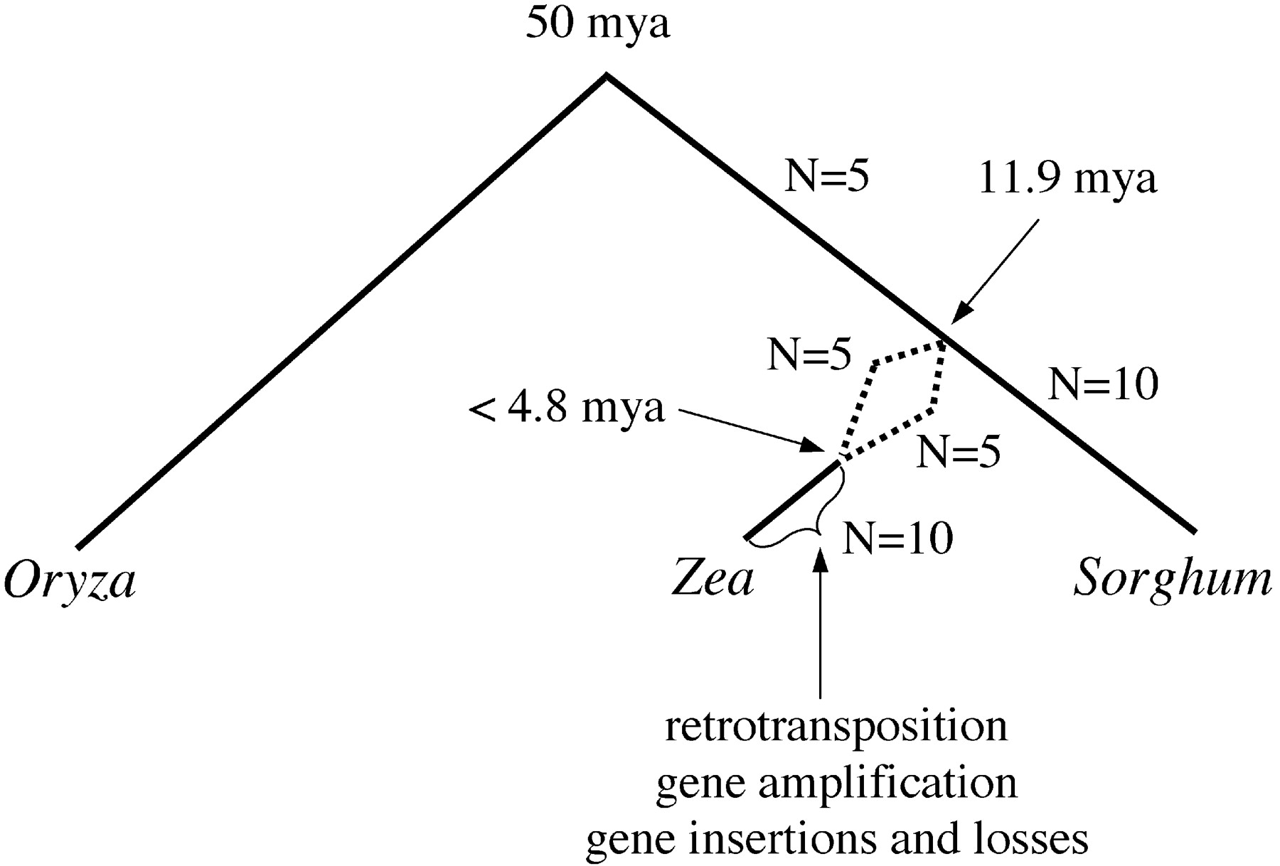 Hypothesized origin of maize and sorghum.