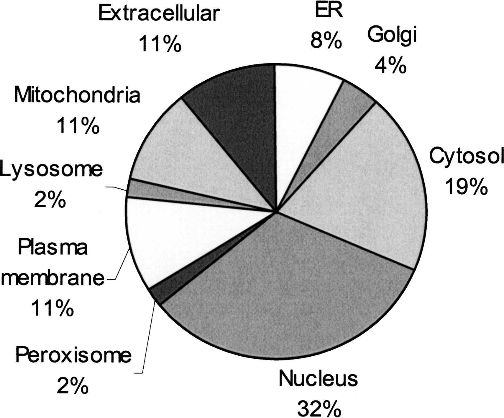 Optimized compartment priors. The compartment priors represent the estimate of the percentage of distinct proteins in each compartment. These compartment priors were optimized for PSLT as explained in the Methods section.