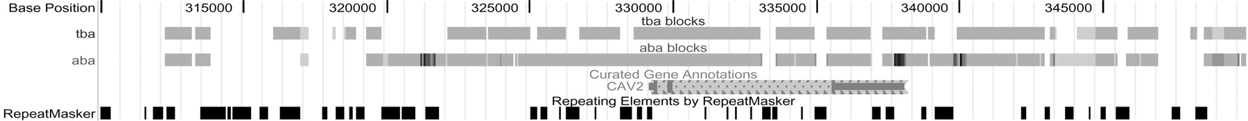 (A) Four “protein” sequences containing three “domains” (A, B, and C; shown as boxes) and unique regions (shown as lines). (B) A row–column multiple alignment introduces gaps (dotted lines) to align domains A and C but cannot represent the alignment of all three domains. (C) The POA graph improves the alignment in B by reducing the number of gaps but does not align all copies of the domains. (D) A representation of the domain structure as a graph with cycles. (E) We obtain a representation of the multiple alignment of the four sequences by “gluing” together similar regions in the sequences. However, the sequences do not align over their entire length, and the shuffled domains create cycles in the resulting graph. (F) A simplified representation of the ABA graph shows the domains as edges of high multiplicity, and the unaligned regions as edges of multiplicity one.