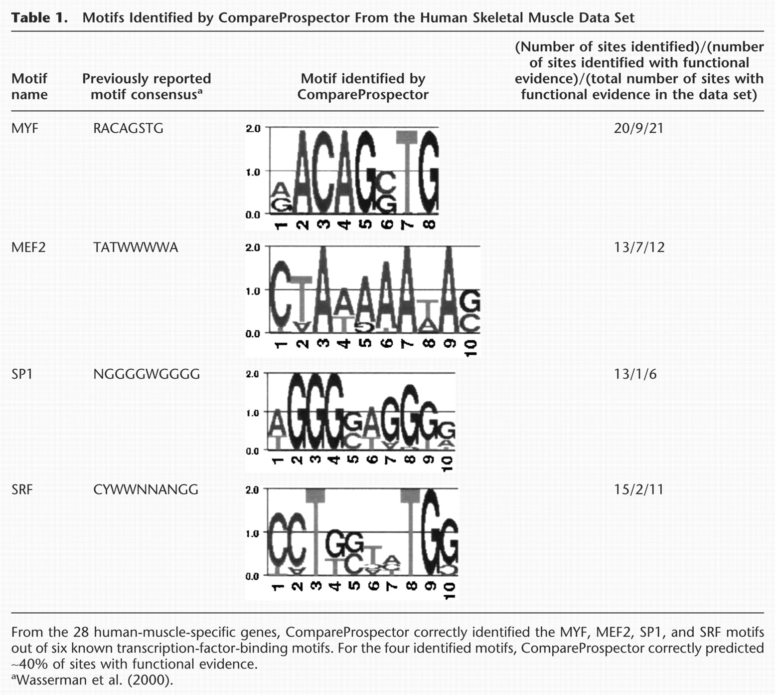 Motifs Identified by CompareProspector From the Human Skeletal Muscle Data Set