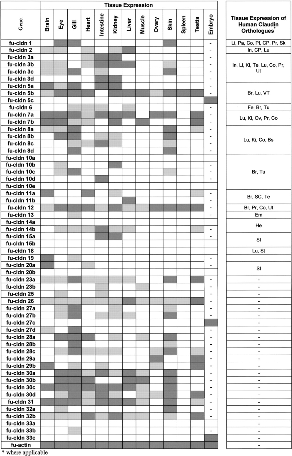 Tissue and Developmental Expression of Fugu Claudin Genes
