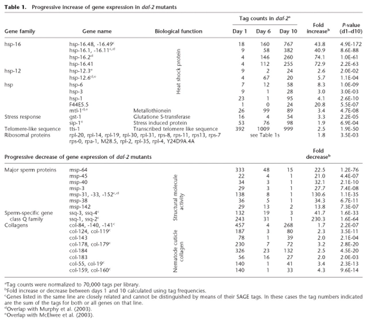 Progressive increase of gene expression in daf-2 mutants
