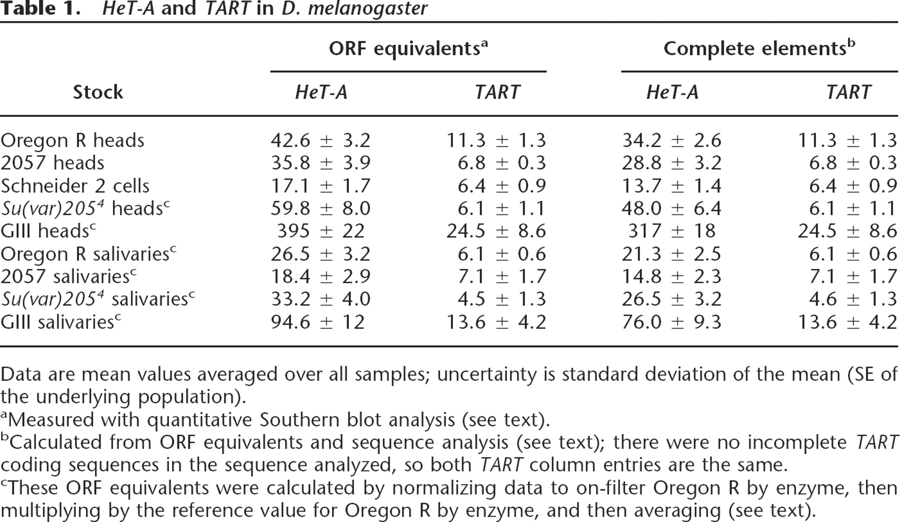 HeT-A and TART in D. melanogaster