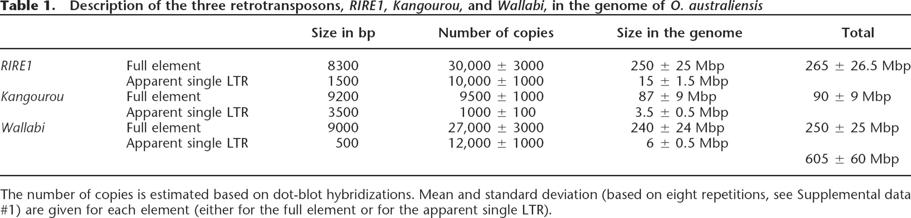 Description of the three retrotransposons, RIRE1, Kangourou, and Wallabi, in the genome of O. australiensis
