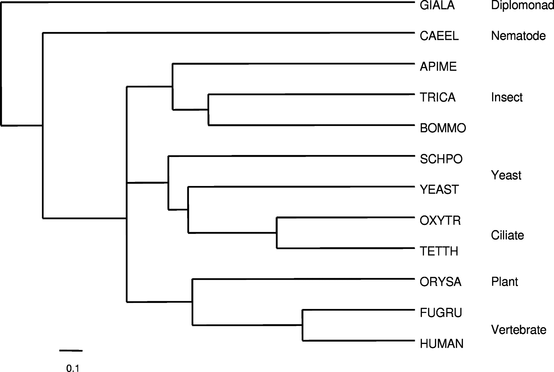 Phylogenetic analysis of the telomerase proteins of insects and diverse other organisms. The maximum likelihood tree (PHYLIP) is based on the alignments of core RT domains 1, 2, A-E for all of the TERTs shown in the Supplemental data.