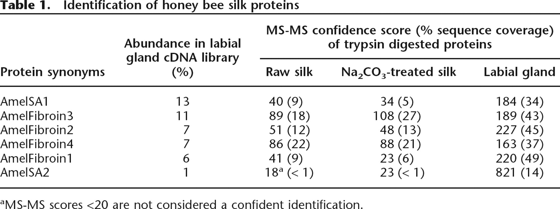 Identification of honey bee silk proteins