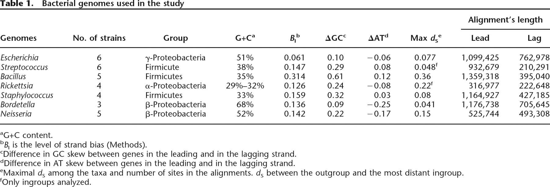dDifference in AT skew between genes in the leading and in the lagging strand.