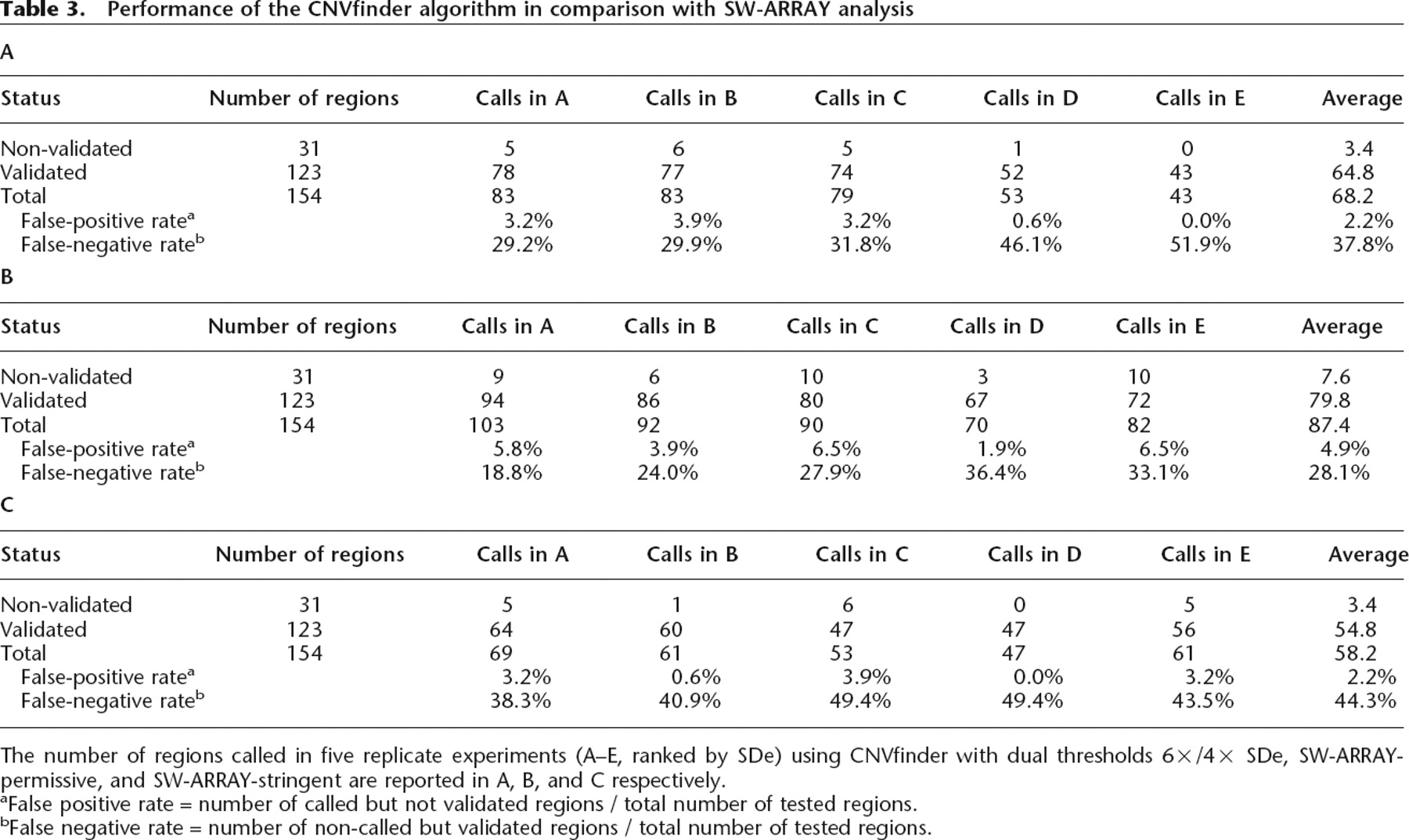 bFalse negative rate = number of non-called but validated regions / total number of tested regions.