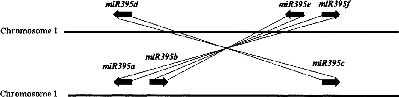 Schematic representation of intrachromosomal duplication within the miR395 family.