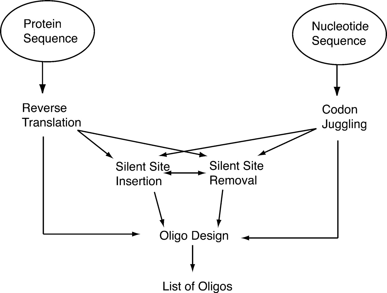 Workflow of GeneDesign. The modules of GeneDesign are designed to smoothly interact with each other. It is also possible to enter any of these modules separately for individual use.