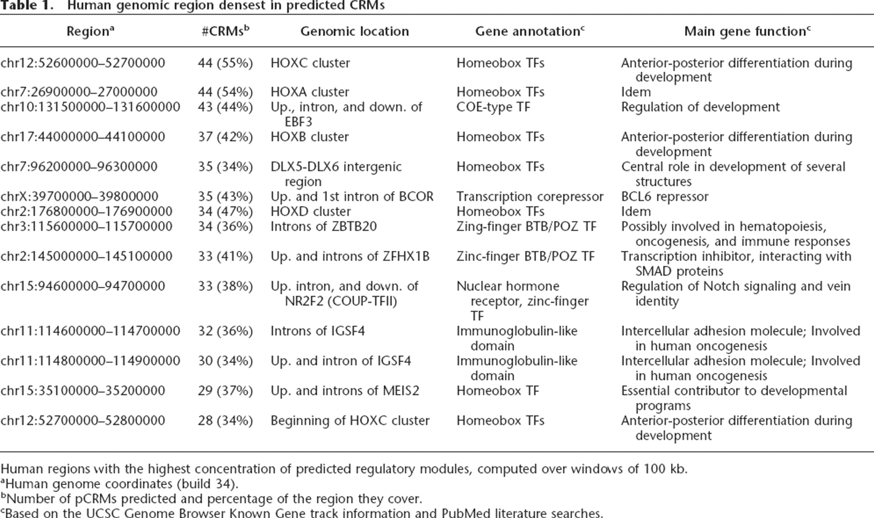 bNumber of pCRMs predicted and percentage of the region they cover.