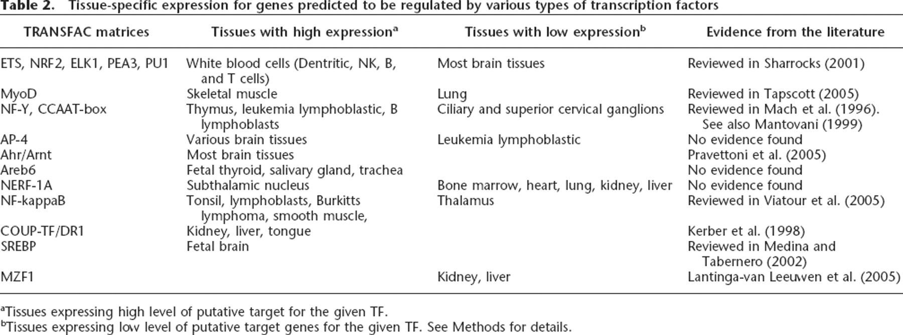 bTissues expressing low level of putative target genes for the given TF. See Methods for details.