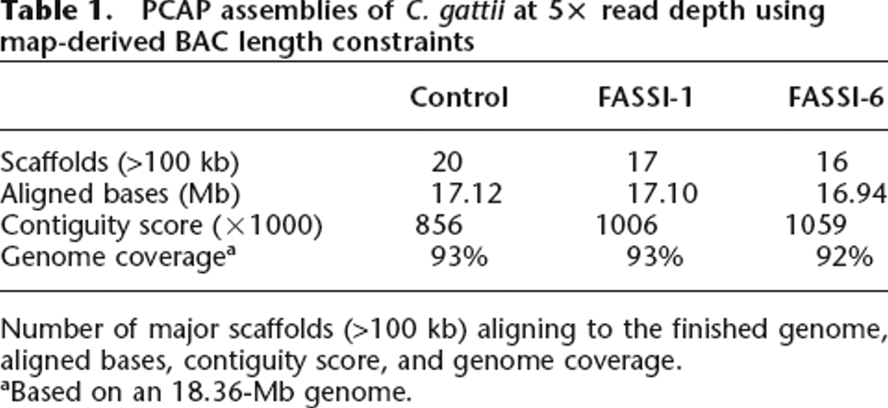 PCAP assemblies of C. gattii at 5× read depth using map-derived BAC length constraints