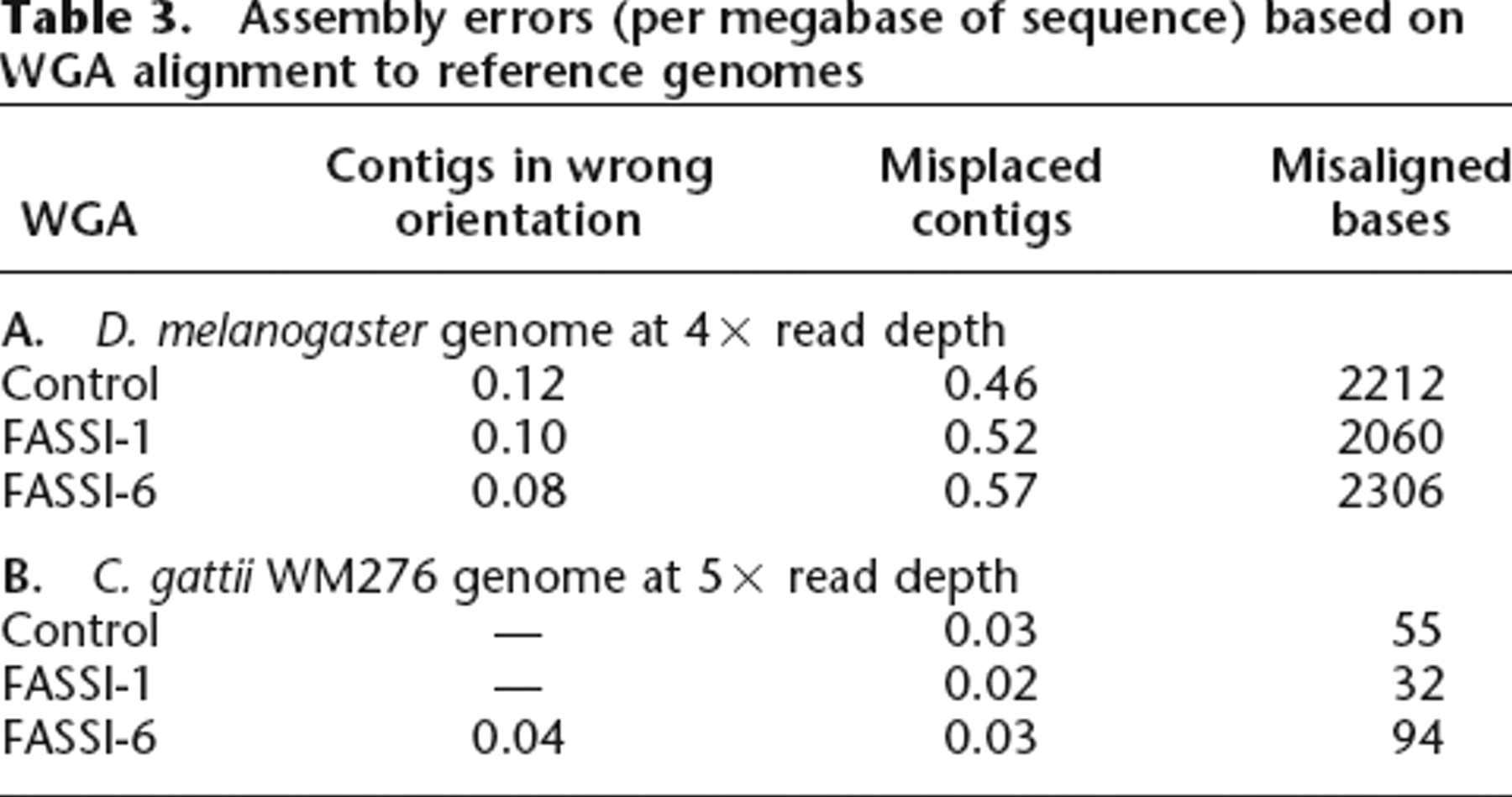 Assembly errors (per megabase of sequence) based on WGA alignment to reference genomes
