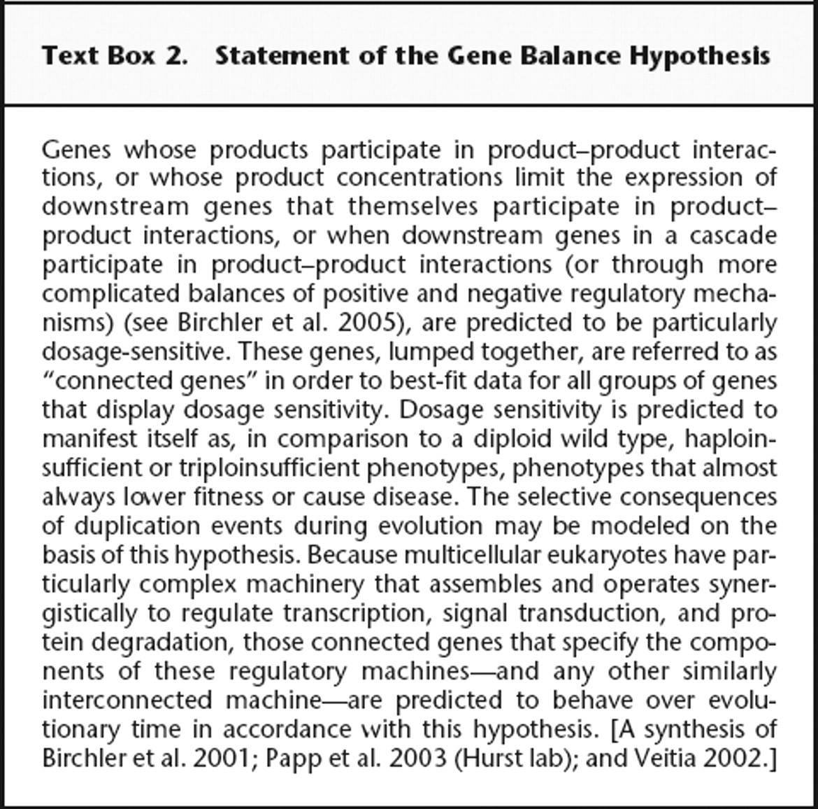 Statement of the Gene Balance Hypothesis