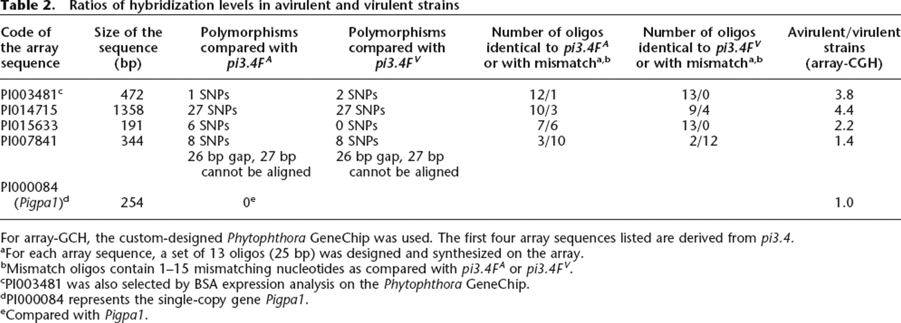 For array-GCH, the custom-designed Phytophthora GeneChip was used. The first four array sequences listed are derived from pi3.4.