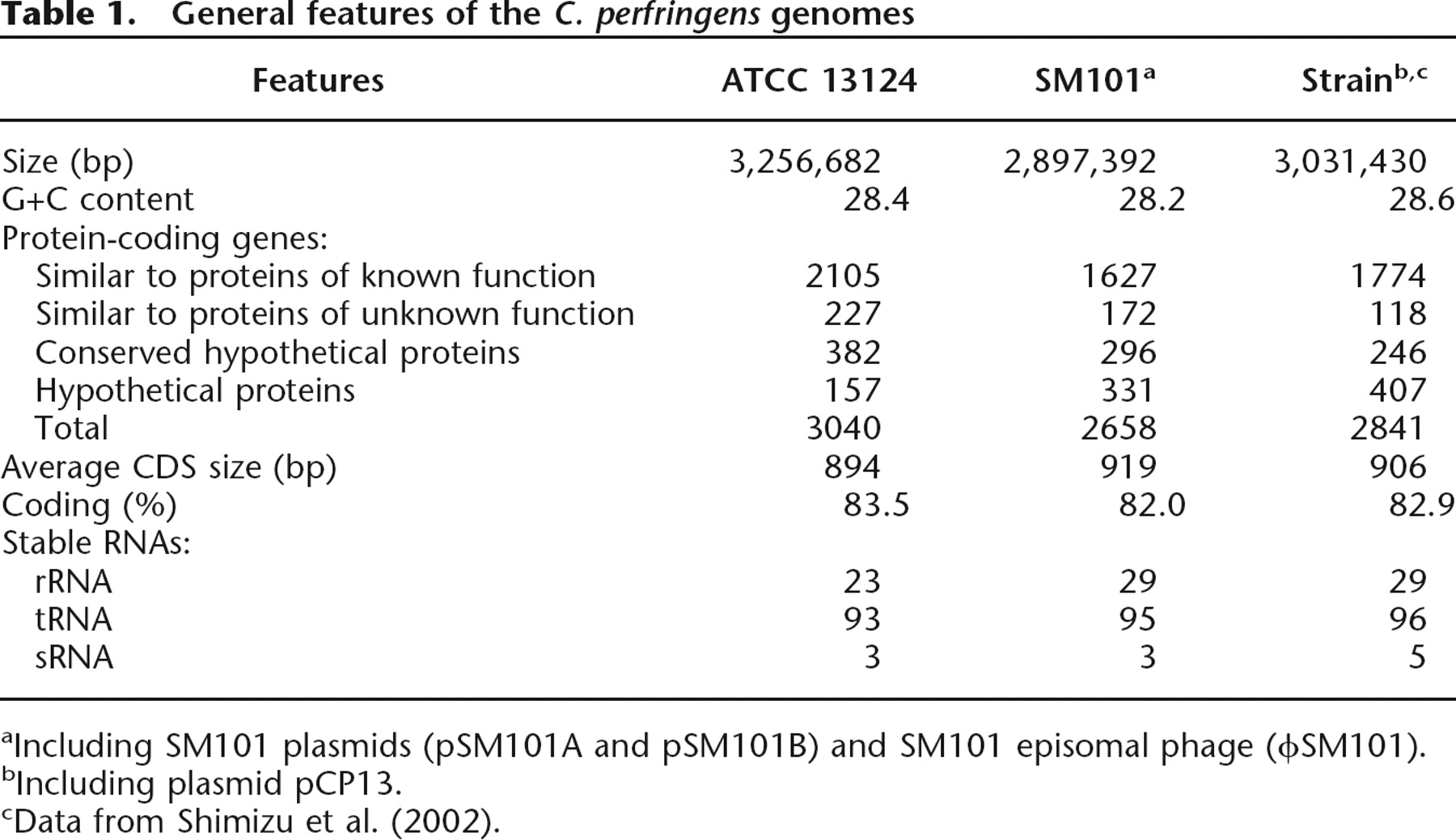 General features of the C. perfringens genomes
