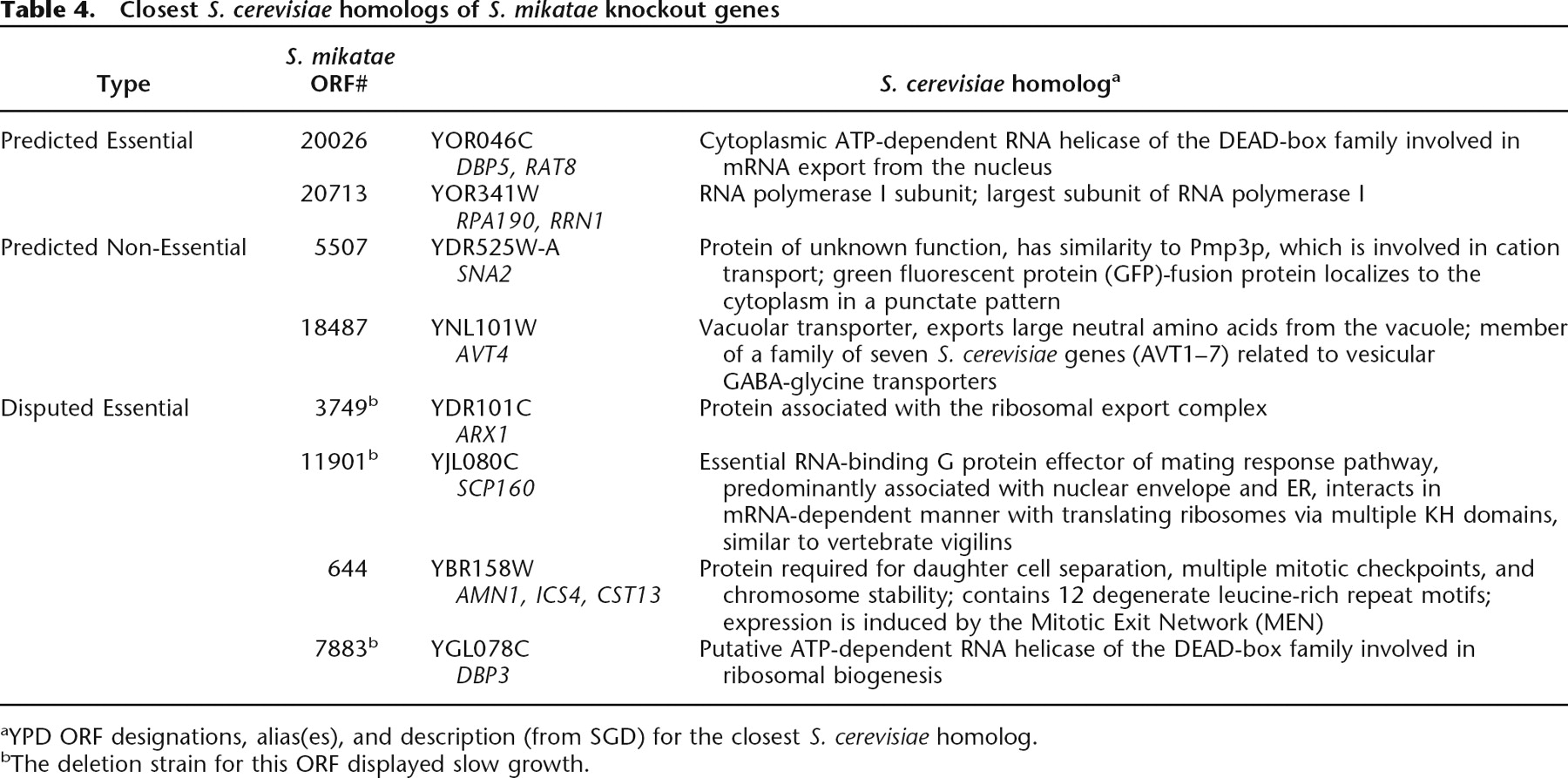 Closest S. cerevisiae homologs of S. mikatae knockout genes