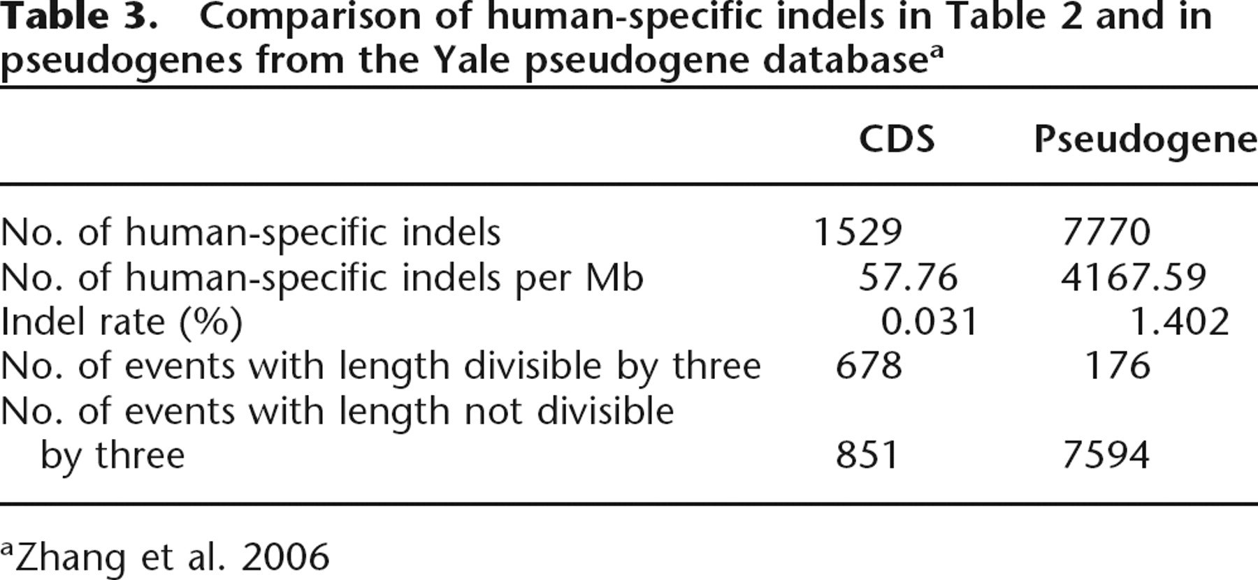 Comparison of human-specific indels in Table 2 and in pseudogenes from the Yale pseudogene databasea