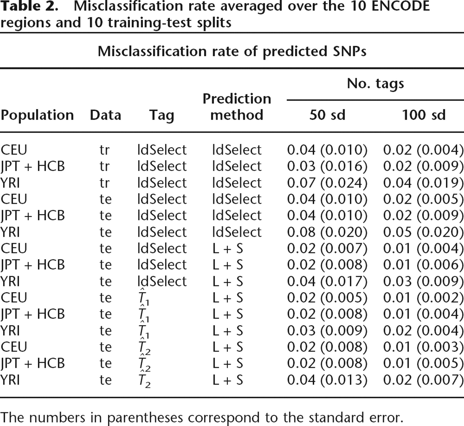 Misclassification rate averaged over the 10 ENCODE regions and 10 training-test splits