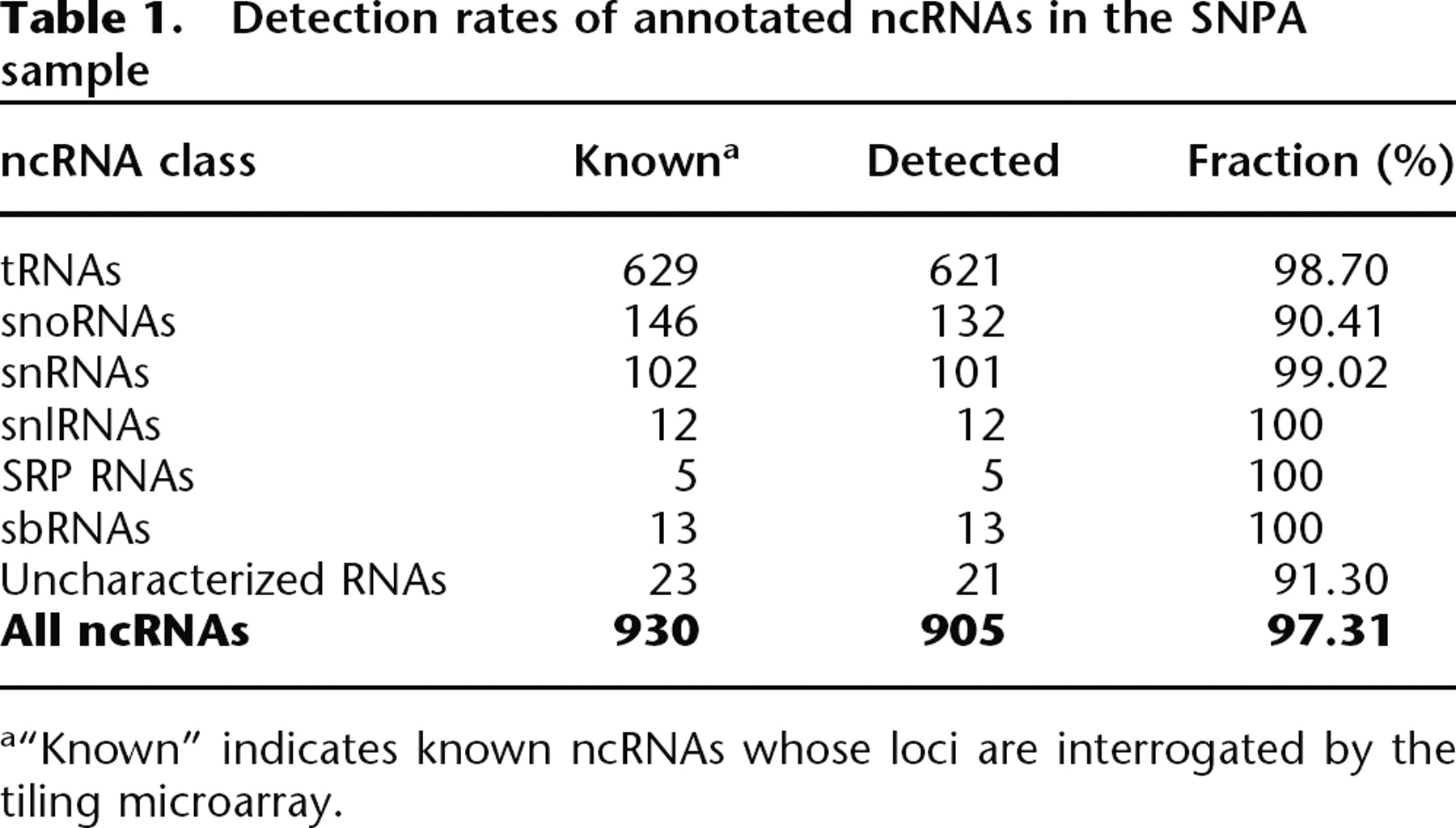 a“Known” indicates known ncRNAs whose loci are interrogated by the tiling microarray.