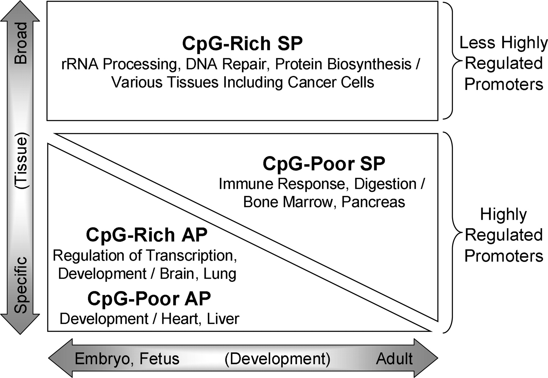Summary of functions and expression specificity of different mammalian promoter types.