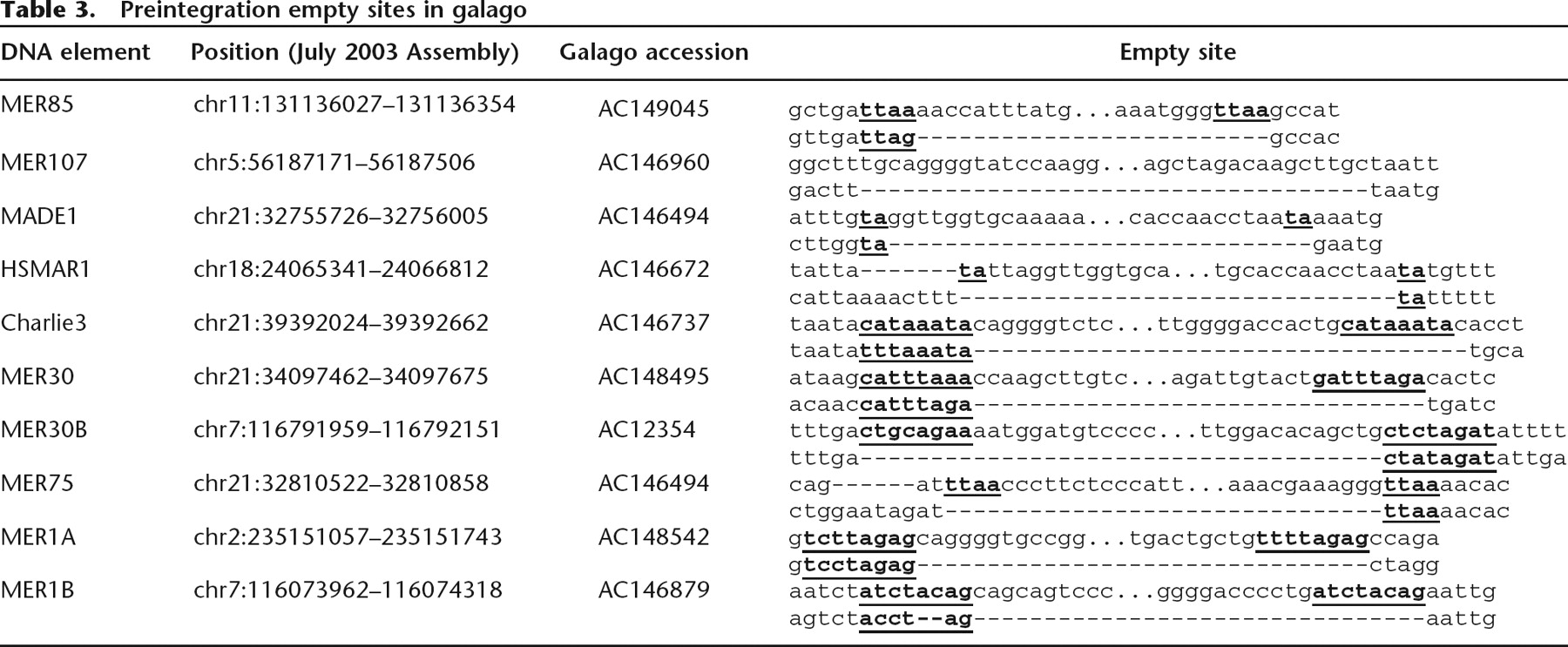 Preintegration empty sites in galago