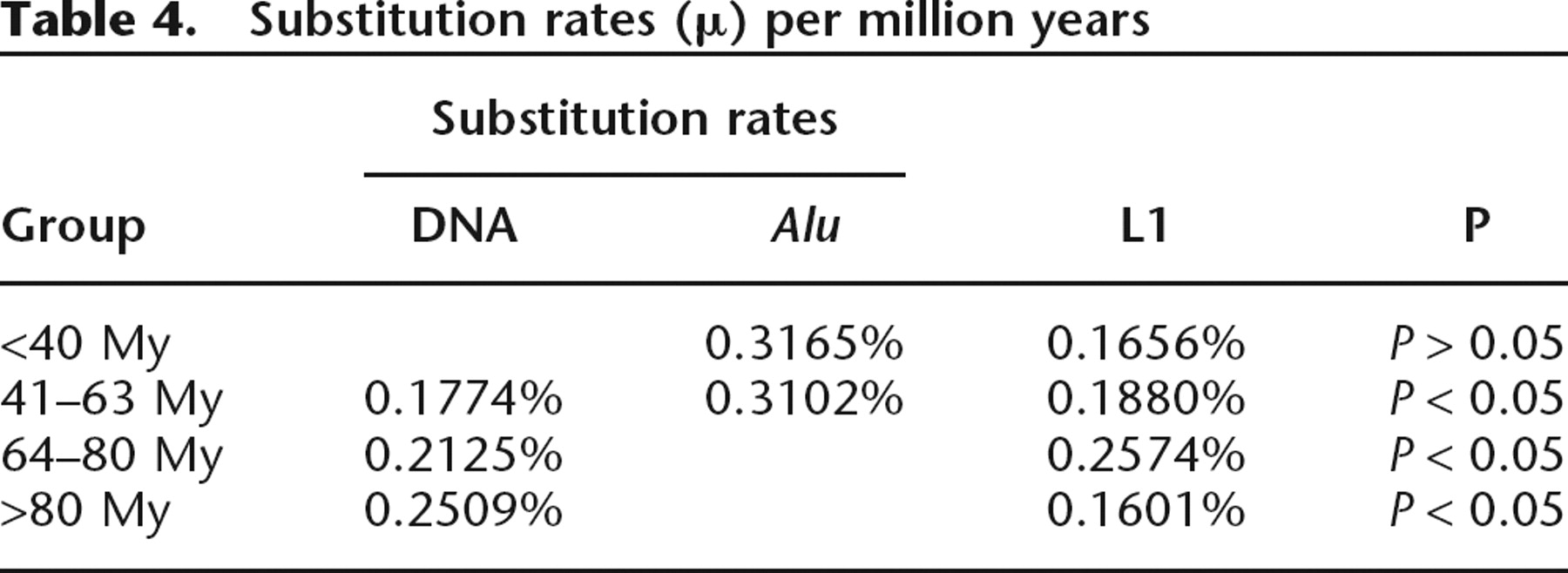 Substitution rates (μ) per million years