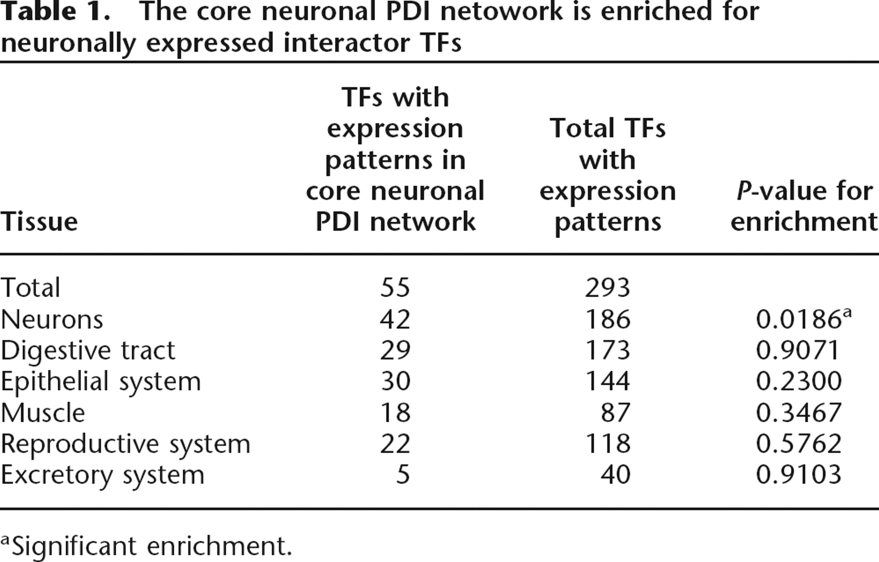 The core neuronal PDI netowork is enriched for neuronally expressed interactor TFs