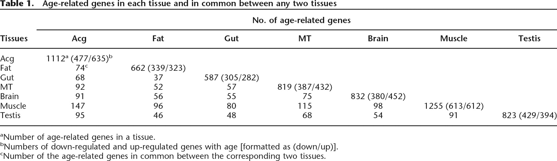 cNumber of the age-related genes in common between the corresponding two tissues.