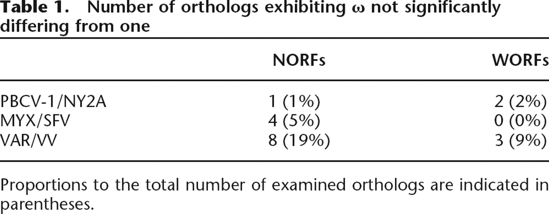 Proportions to the total number of examined orthologs are indicated in parentheses.