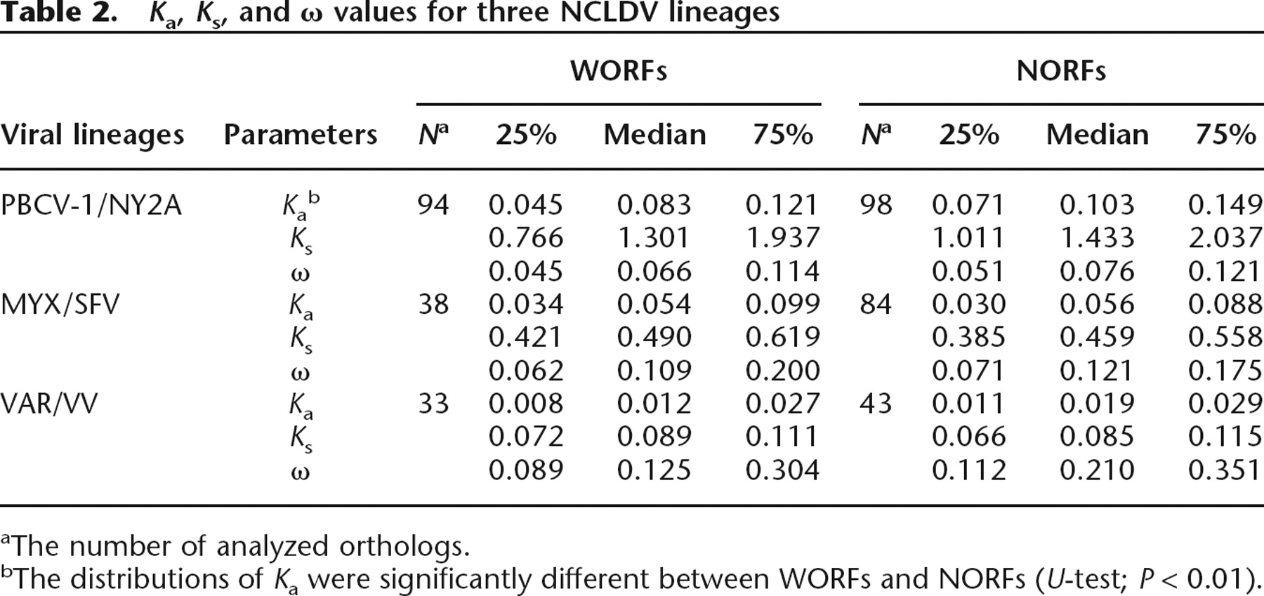 bThe distributions of Ka were significantly different between WORFs and NORFs (U-test; P < 0.01).