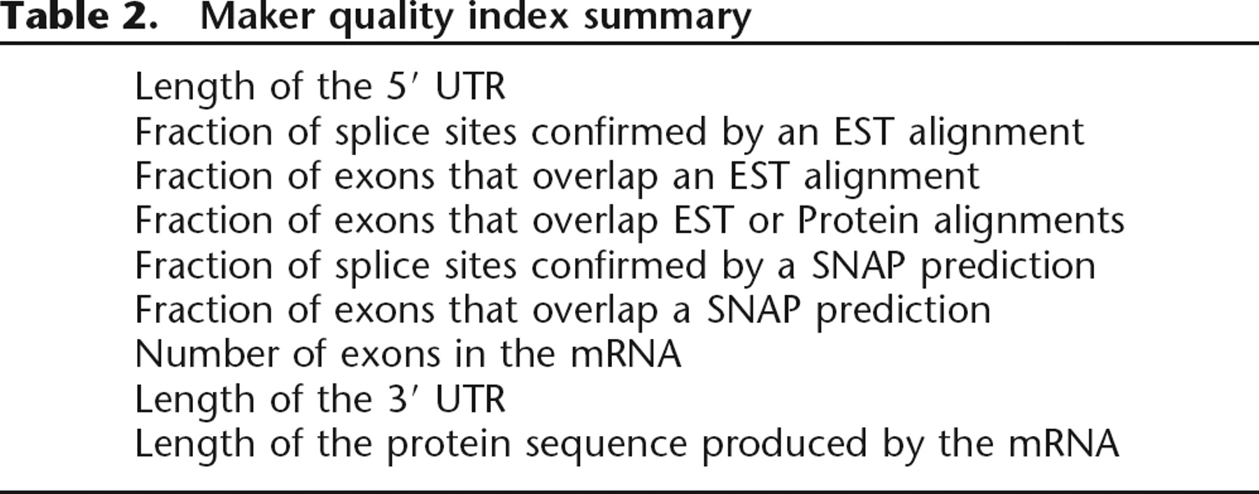 Maker quality index summary