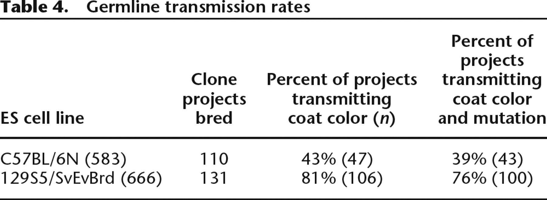 Germline transmission rates