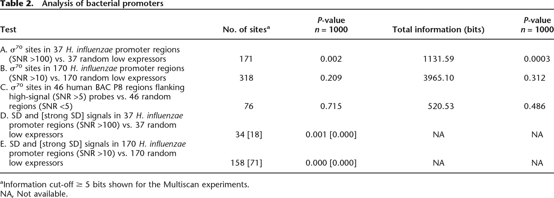 aInformation cut-off ≥ 5 bits shown for the Multiscan experiments.