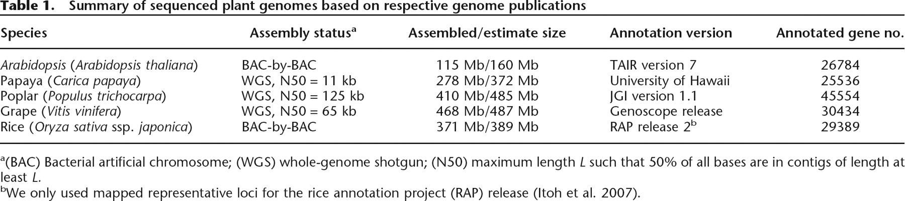 bWe only used mapped representative loci for the rice annotation project (RAP) release (Itoh et al. 2007).