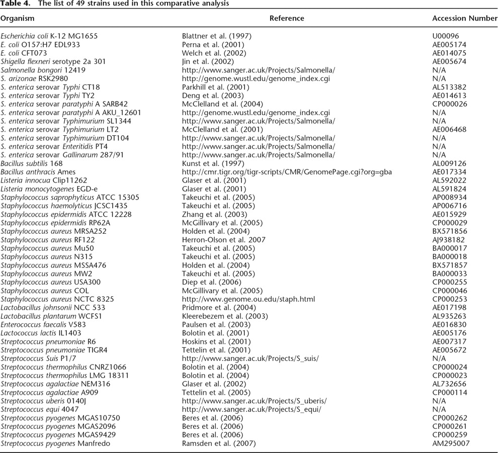 The list of 49 strains used in this comparative analysis