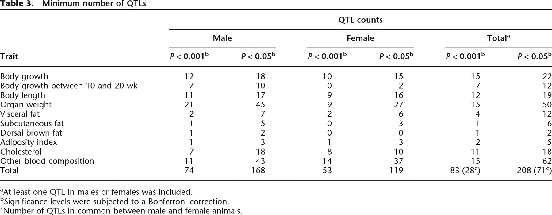 cNumber of QTLs in common between male and female animals.