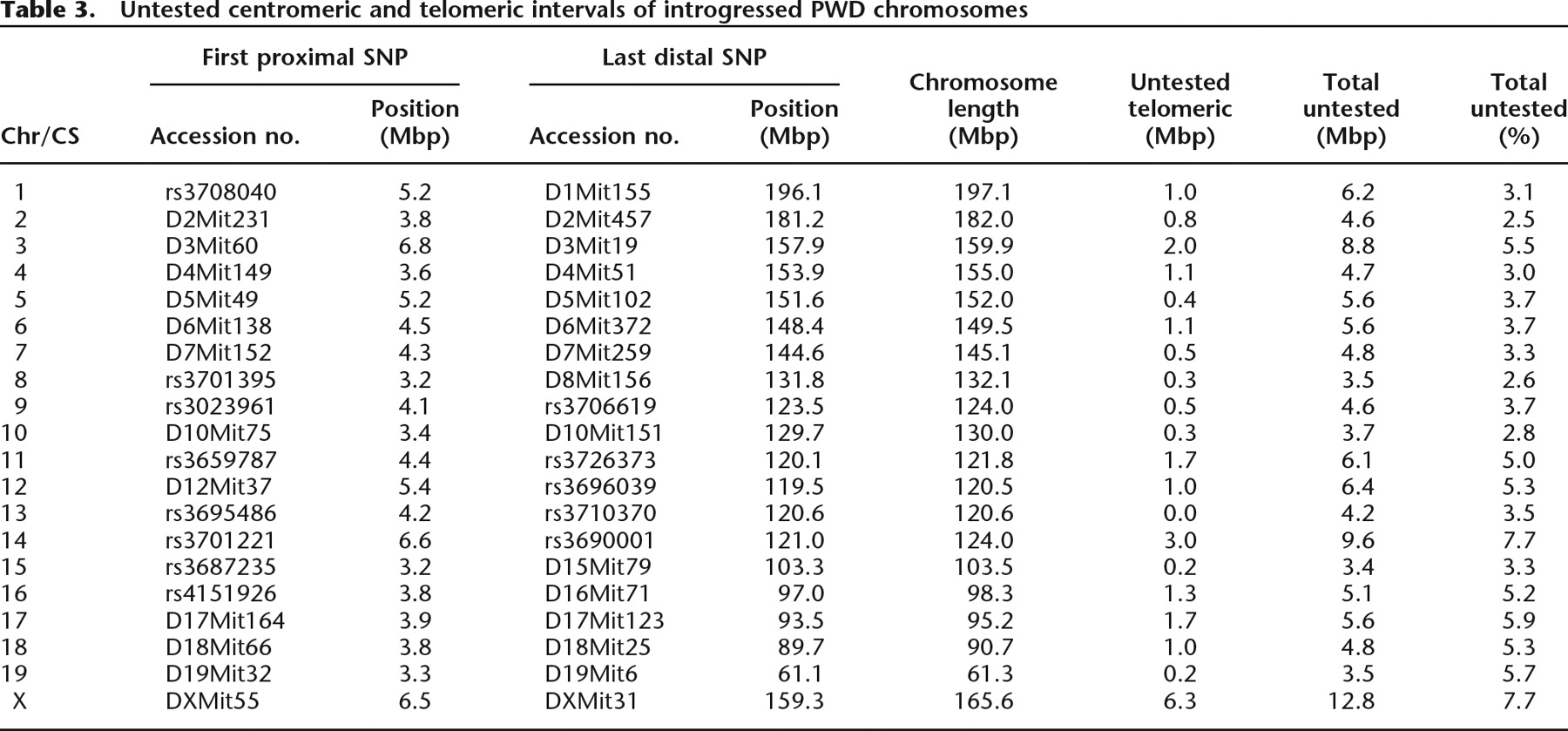 Untested centromeric and telomeric intervals of introgressed PWD chromosomes