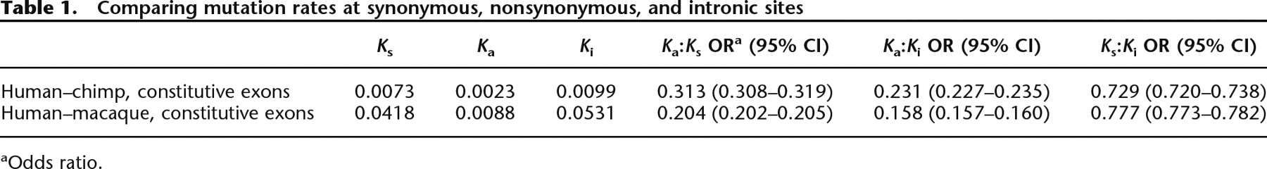 Comparing mutation rates at synonymous, nonsynonymous, and intronic sites