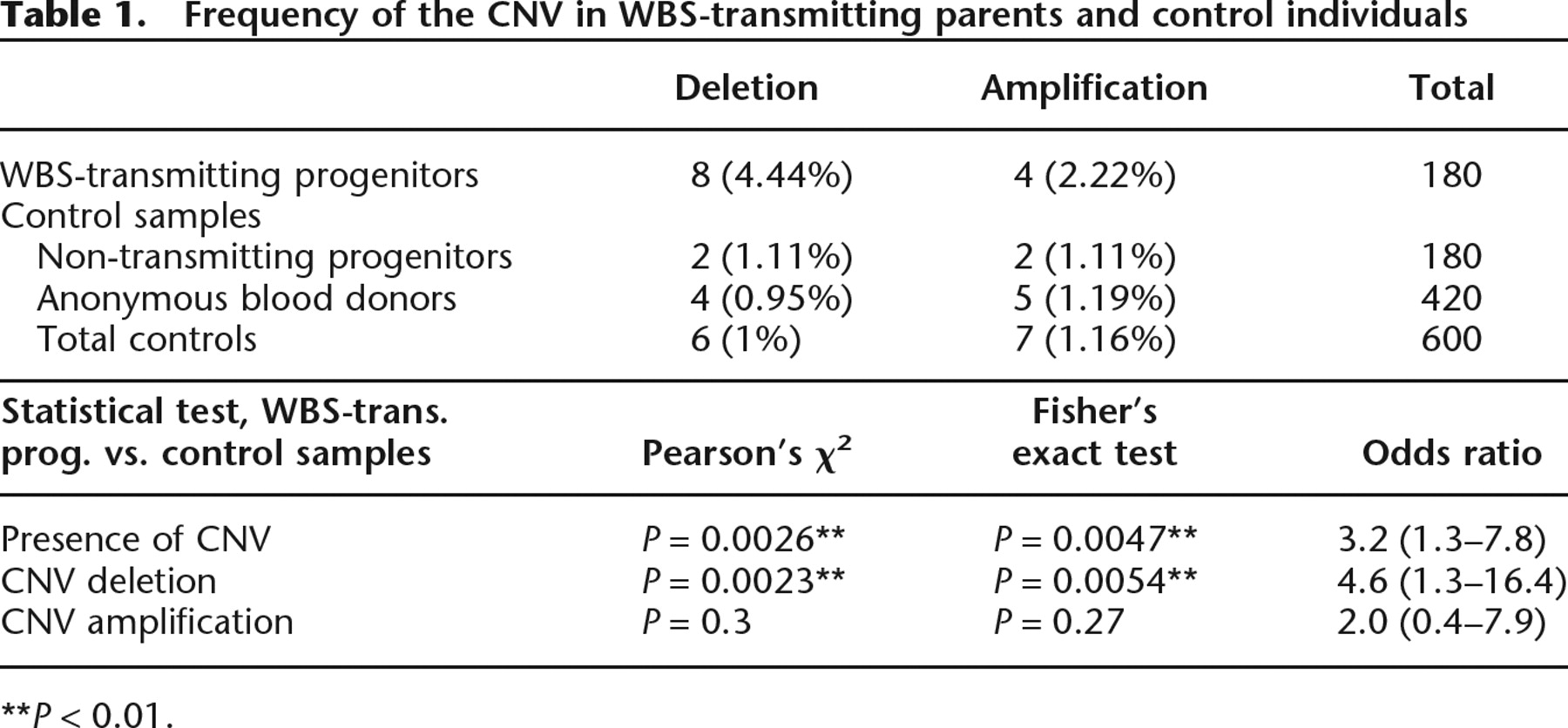 Frequency of the CNV in WBS-transmitting parents and control individuals
