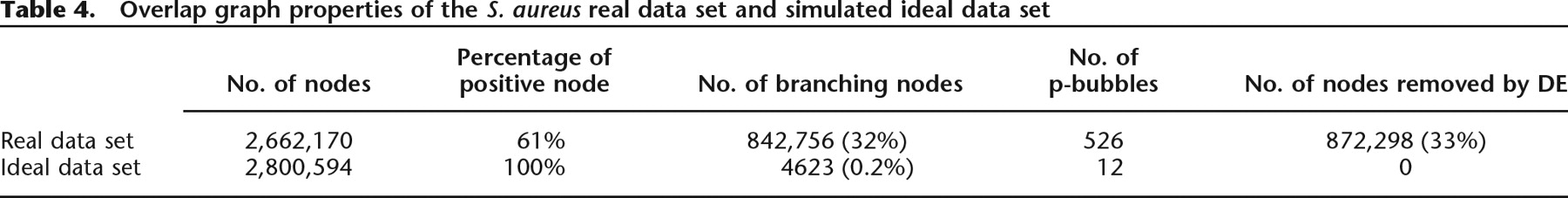 Overlap graph properties of the S. aureus real data set and simulated ideal data set