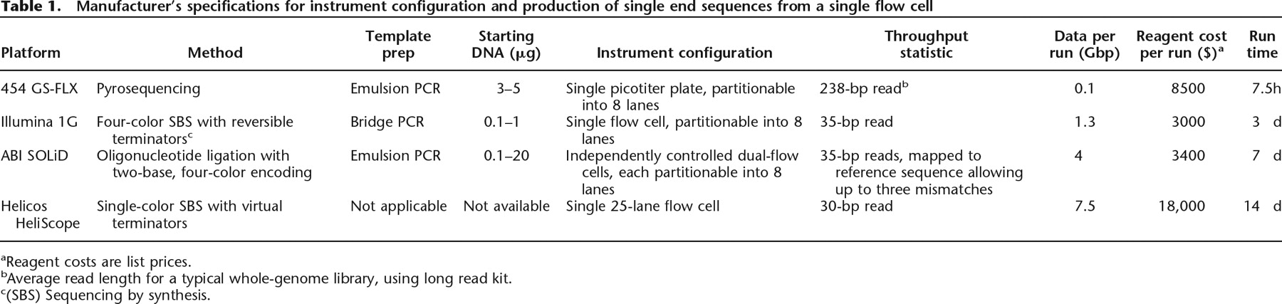 Manufacturer’s specifications for instrument configuration and production of single end sequences from a single flow cell